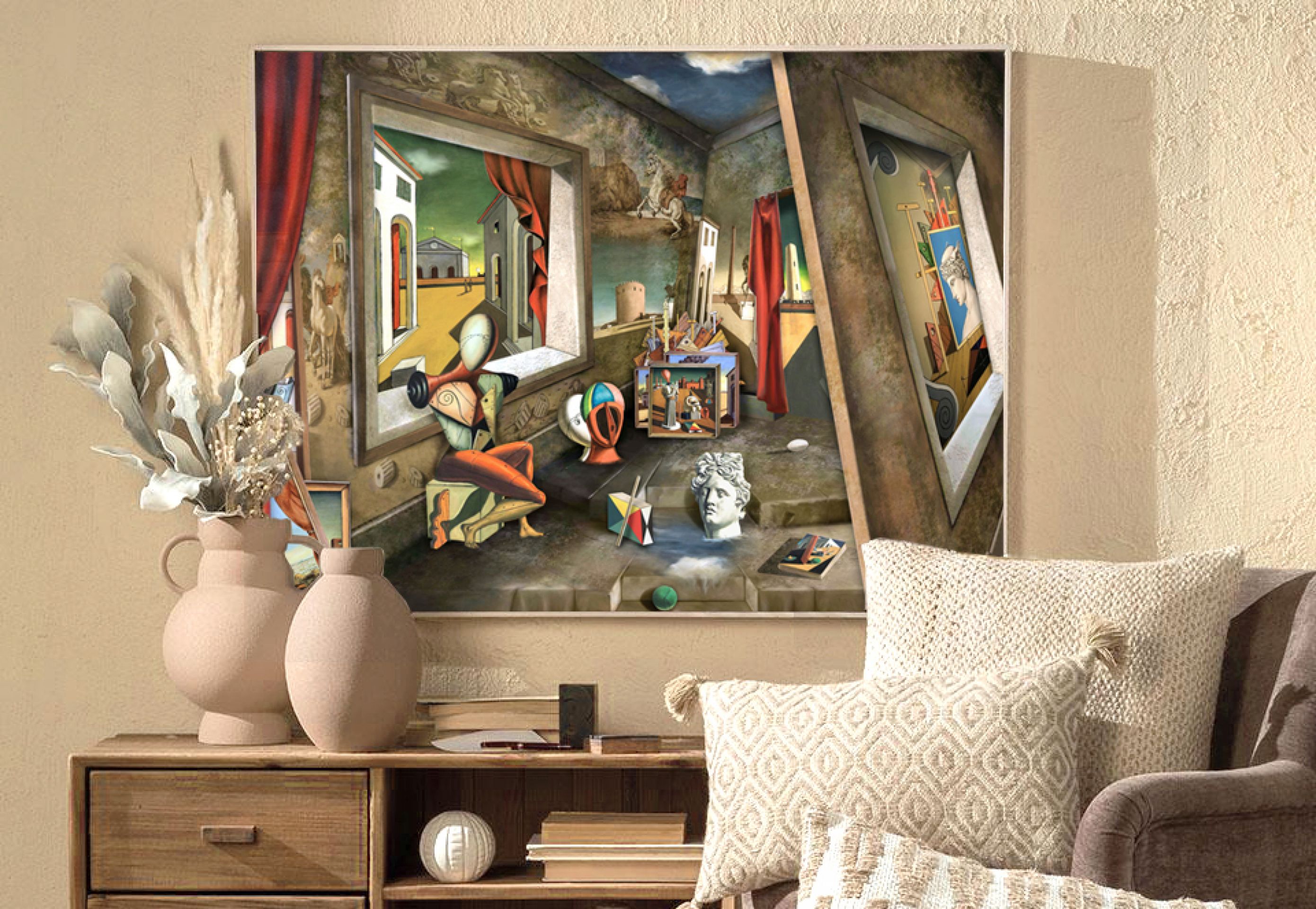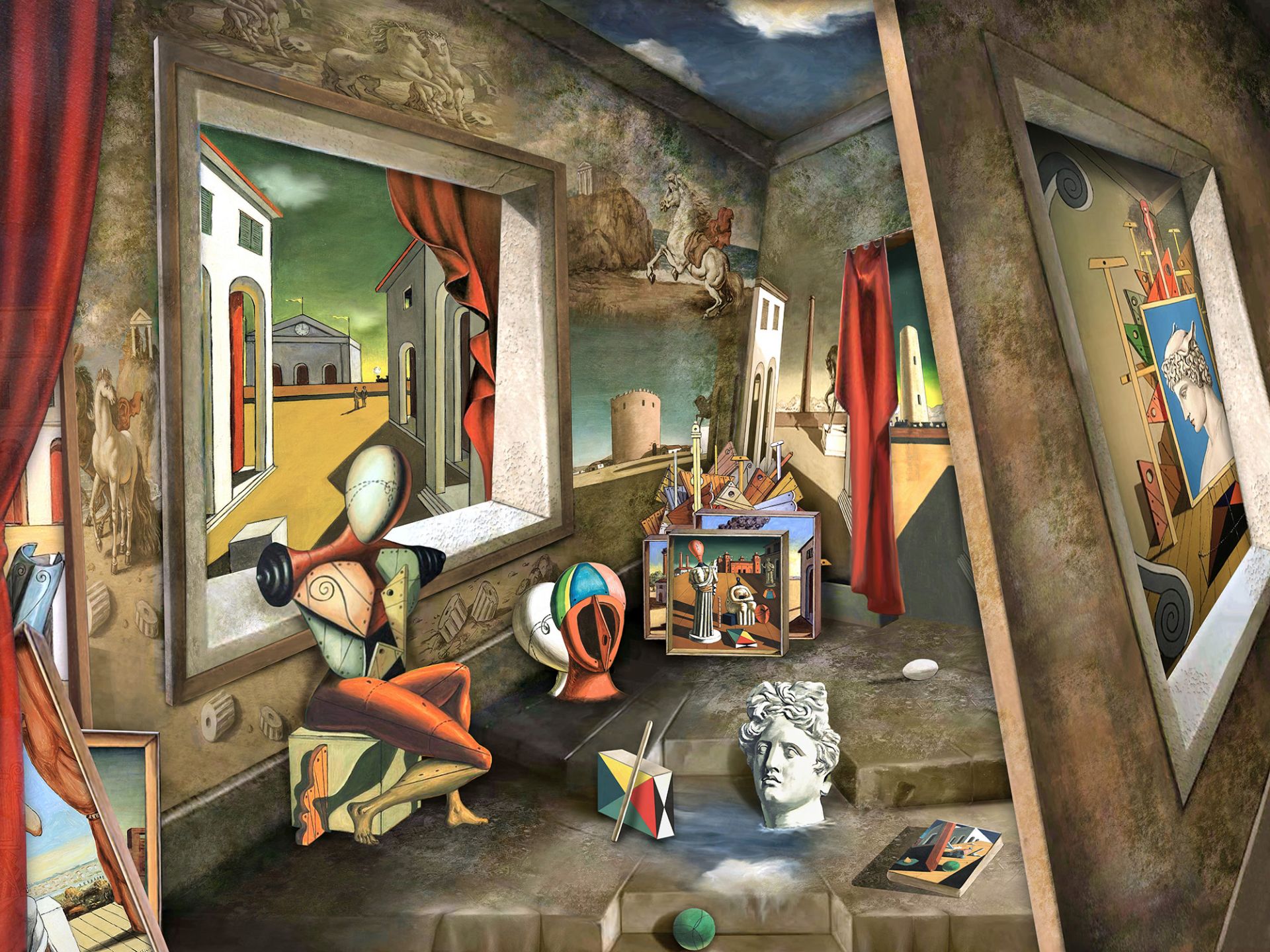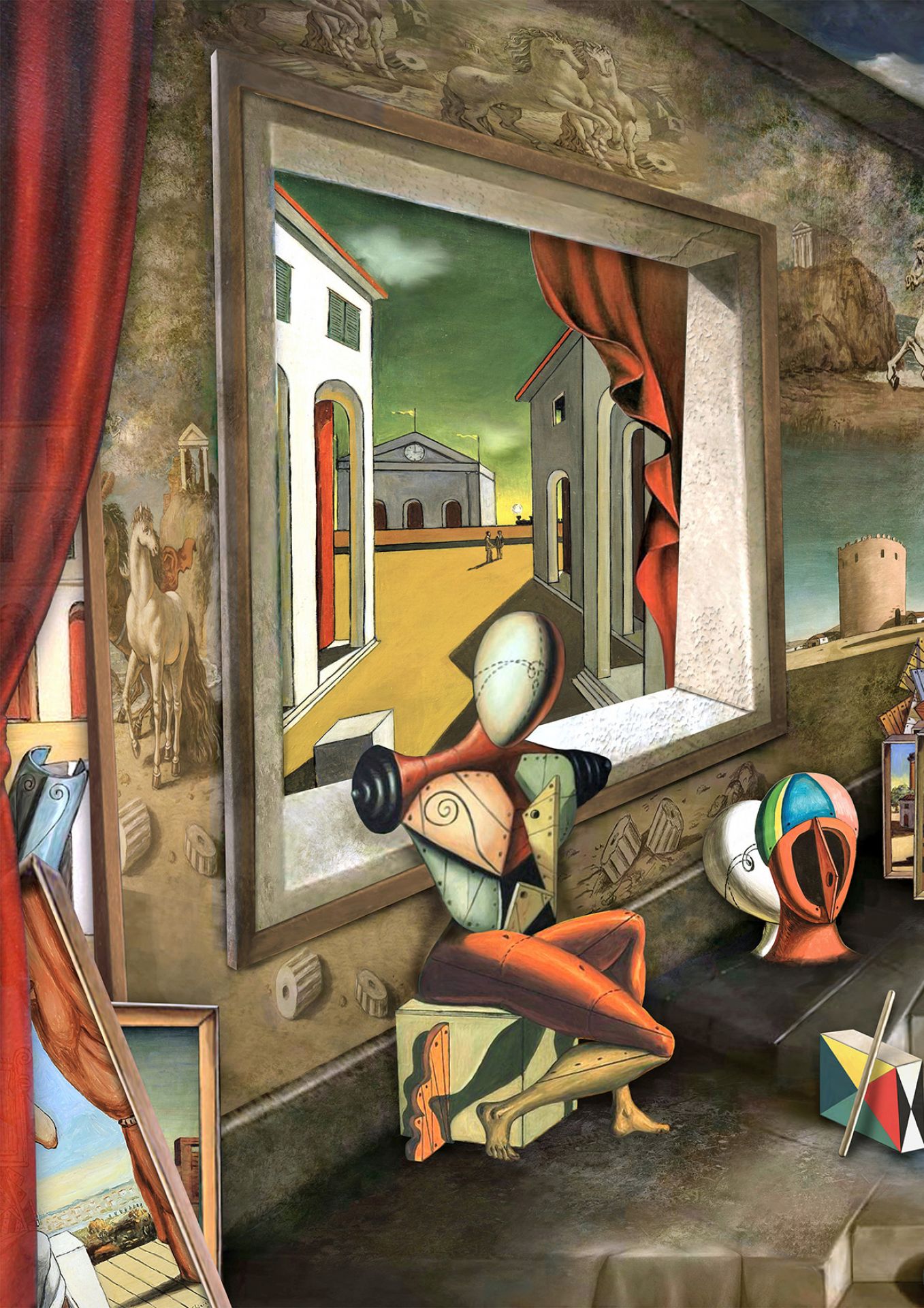 Omaggio all'arte visionaria del grande artista metafisico, Giorgio de Chirico. Protagonisti della scena i luoghi onirici, silenziosi, misteriosi ed enigmatici che hanno reso celebri i suoi dipinti. Le città, le piazze deserte e disabitate, gli oggetti totalmente decontestualizzati, il senso d'attesa, la sensazione che il tempo sia sospeso, il senso di solitudine e di inquietudine , lo spaesamento.